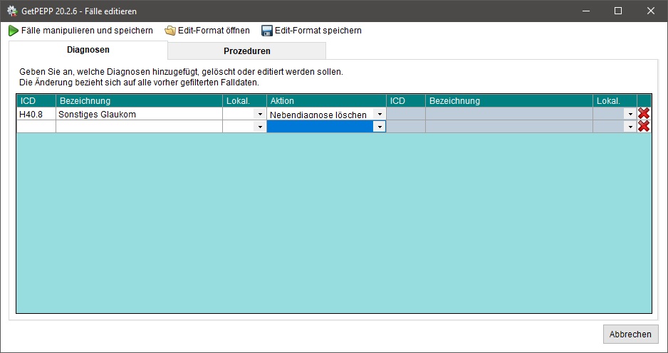 - Suchfunktionen zur Erfassung von Diagnosen und Prozeduren